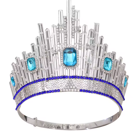 This exquisite replica of the Miss Universe Crown, originally designed by Diamond International, Inc. and worn from 2014 to 2016, captures the spirit of its inspiration—the iconic Manhattan skyline. Crafted with meticulous attention to detail, this crown features a distinctive silhouette that reflects the architectural lines of New York City, fulfilling the original design request by the Miss Universe Organization. Available in clear stones accented with vibrant aqua blue hues, it offers a refined and elegant look that highlights the crown’s unique design. Perfect for collectors, pageant enthusiasts, or special occasions, it embodies both history and artistry in a stunning piece.