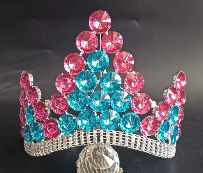 Elevate any pageant look with the Colorful Pageant Adjustable Tiara, designed for a perfect fit and vibrant style. Available in multiple lively colors, this tiara complements a wide range of outfits, making it ideal for contestants seeking both comfort and eye-catching appeal. The adjustable design accommodates different head sizes, with a base diameter of 7 inches and a height of 6 inches, ensuring it stays securely in place throughout events. Crafted to combine durability with elegance, this tiara enhances any pageant ensemble while providing a confident, polished appearance.
