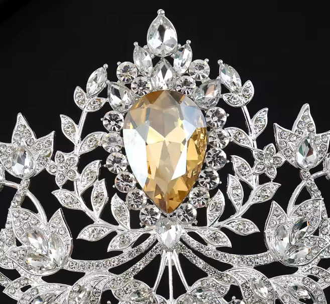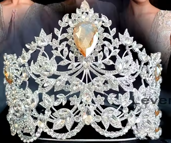 The crown’s centerpiece, a magnificent modified mixed cut golden canary simulated diamond weighing 62.83 carat signifies a woman’s inner strength and reminds us that in unity, lies power.